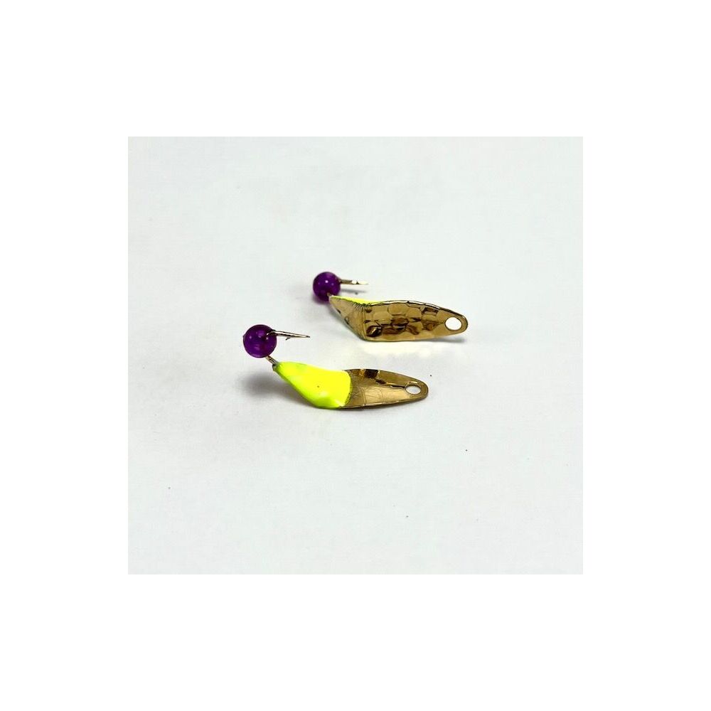 Mark's Tiny Triples are now available in extremely limited quantities in this Gold Plated variant. Tiny Triples are made using a #2 willow leaf blade and are then painted and hand soldered here in Michigan. Bead spoons like these have been around for nearly 5o yrs in the great lakes region and are known for their incredible ability to catch huge numbers of big fat yellow bellied perch and many other species too.
