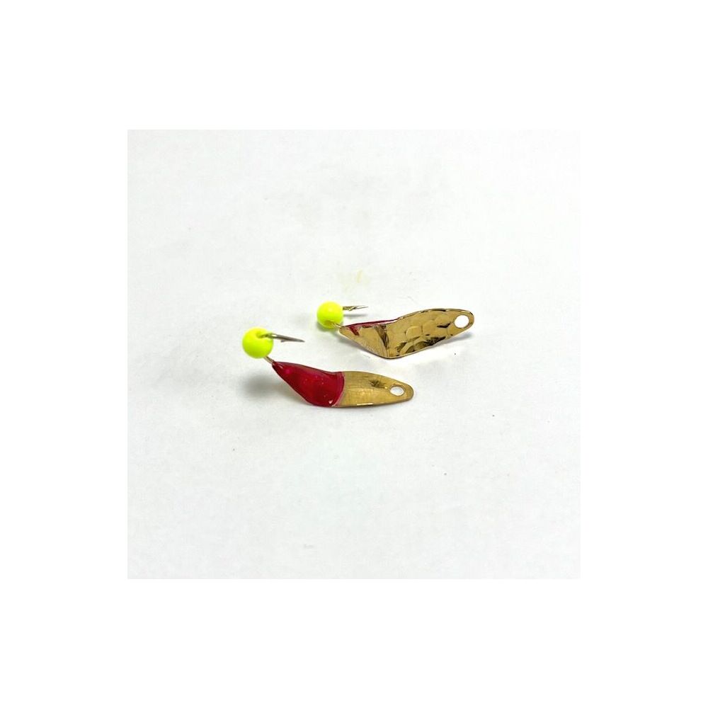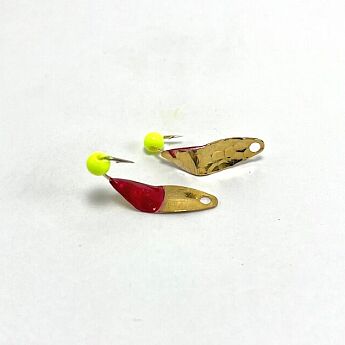 Mark's Tiny Triples are now available in extremely limited quantities in this Gold Plated variant. Tiny Triples are made using a #2 willow leaf blade and are then painted and hand soldered here in Michigan. Bead spoons like these have been around for nearly 5o yrs in the great lakes region and are known for their incredible ability to catch huge numbers of big fat yellow bellied perch and many other species too.