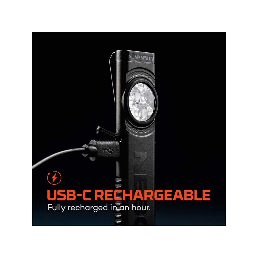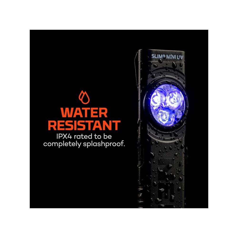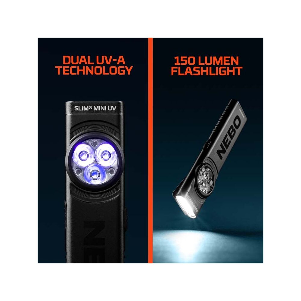 Illuminate the invisible! The SLIM® Mini UV seamlessly transitions between UV and white light modes eliminating the need to carry multiple lights on the job. The dual UVA (Ultraviolet A) Technology simplifies authentication, detection, and inspection tasks while the 150-lumen COB LED flashlight provides bright white light helping you see clearly. The broad-spectrum wavelengths provide a blended illumination and fluorescence that is ideal for detection of pet urine, inspection of auto leaks with UV dyes, pest detection such as scorpions, cleaning inspections, authentication of currency and activation of glow-in-the dark fishing lures. Its ultra-thin design fits comfortably in your hand or pocket with a low-profile clip to keep it secure. Need hands-free operation? The magnetic base has you covered. Constructed with durable aluminum housing, it's both impact and water-resistant. And with USB C rechargeability, you can fully charge it in just an hour, ensuring nearly uninterrupted performance. Say goodbye to carrying multiple lights and hello to streamlined efficiency with the SLIM Mini UV - empowering you to do more with less.